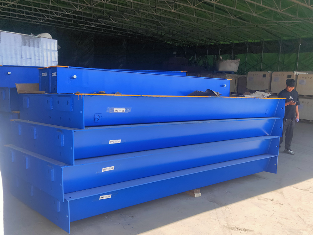 采購背景  河南萬糧國際貿(mào)易有限公司印度尼西亞糧貿(mào)工廠原有一臺3.2mx16m定額100噸地磅,由于秤臺變形嚴(yán)重,計量不精確,此次委托恒瑞稱重重新生產(chǎn)加工一臺加厚型出口分體式數(shù)字汽車衡。此地磅采用安鋼Q235B材質(zhì)加厚中板,采用四節(jié)八塊分體式組合結(jié)構(gòu),便于出口貿(mào)易集裝箱運輸。同時配備柯力出口型數(shù)字傳感器,柯力20008出口型英文數(shù)字儀表,此批分體秤已順利交貨裝車,完成交付。